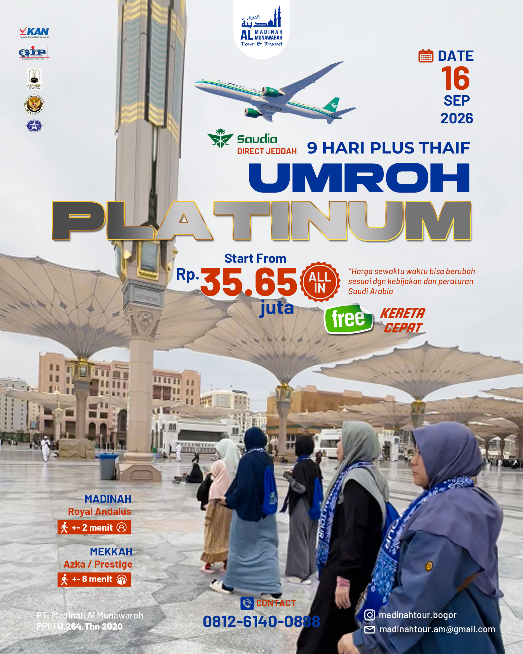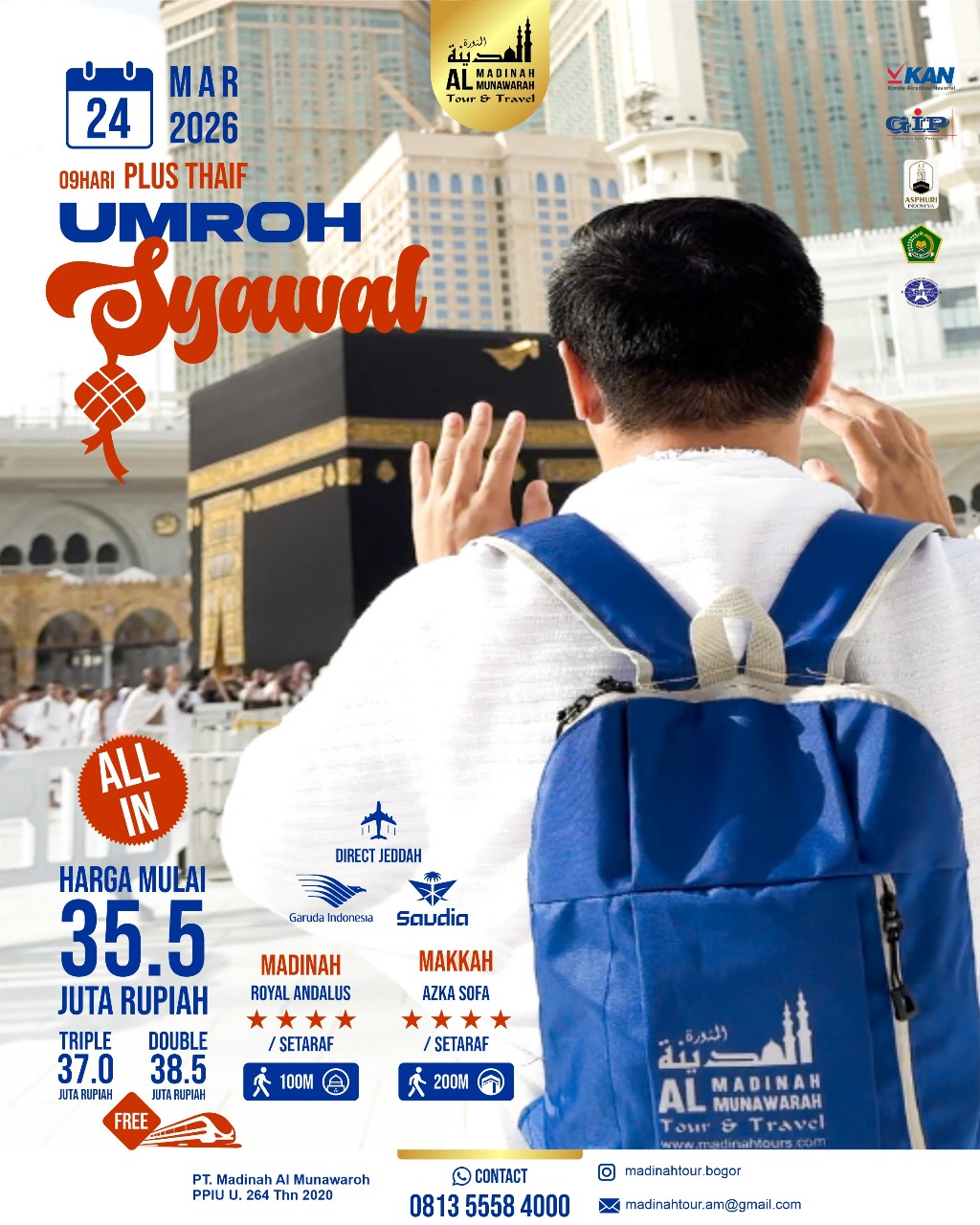 Terdaftar resmi di KEMENAG (SK U.264/2020). Transparansi dan keamanan dana jamaah adalah prioritas.