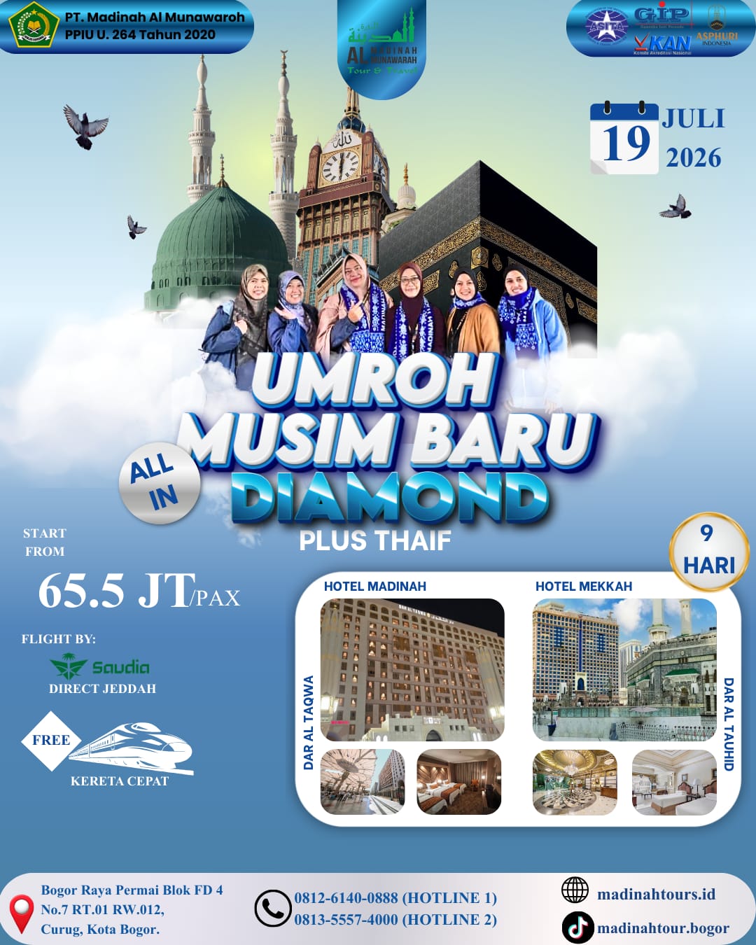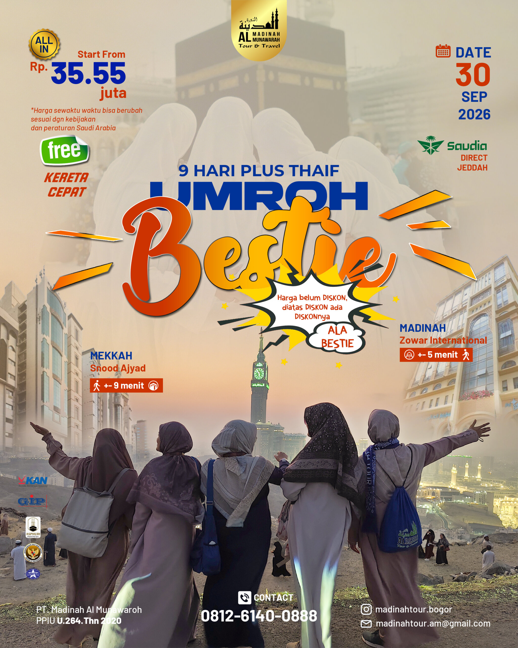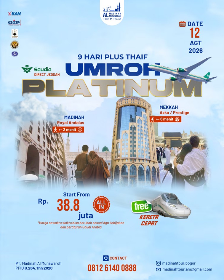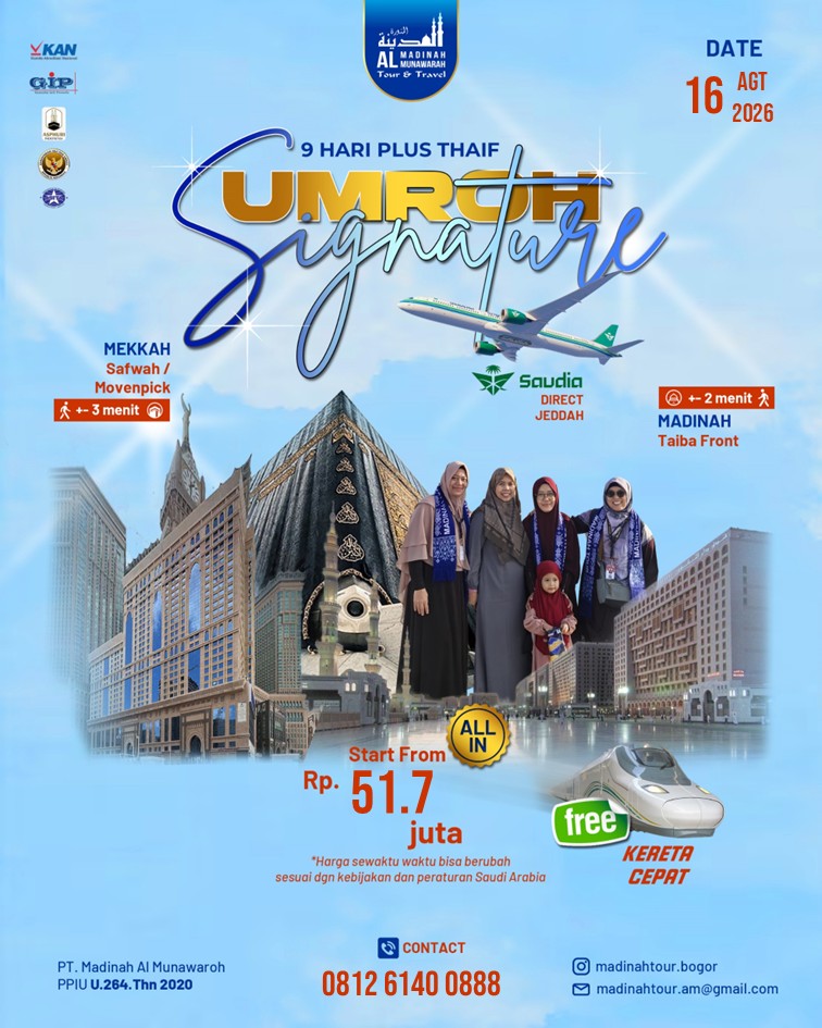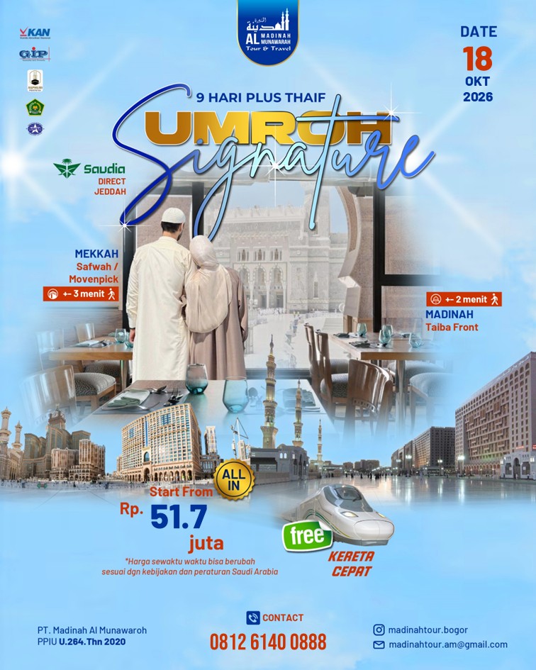 Hotel pilihan bintang 3/4/5 dekat Haramain, transportasi nyaman, dan hidangan cita rasa Indonesia.